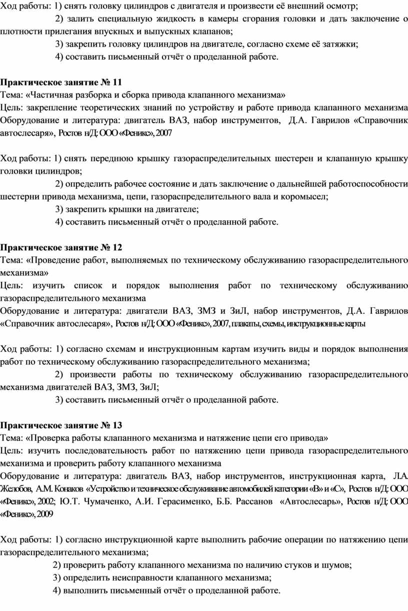 Практическая работа №11 «Частичная разборка и сборка привода клапанного механизма»..............11