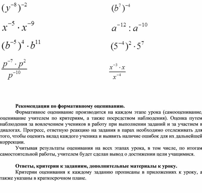 Знать определение степени с целым показателем;