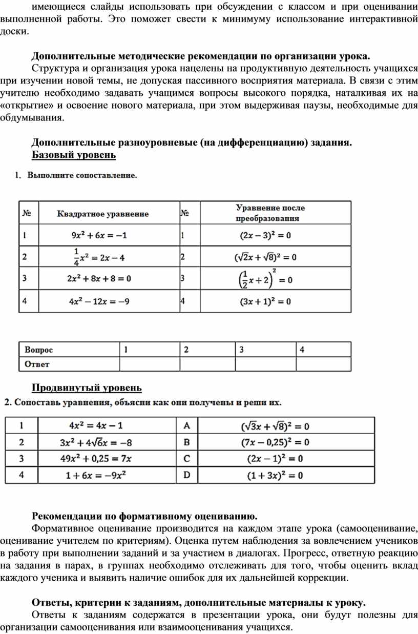 Ответы, критерии к заданиям, дополнительные материалы к уроку.