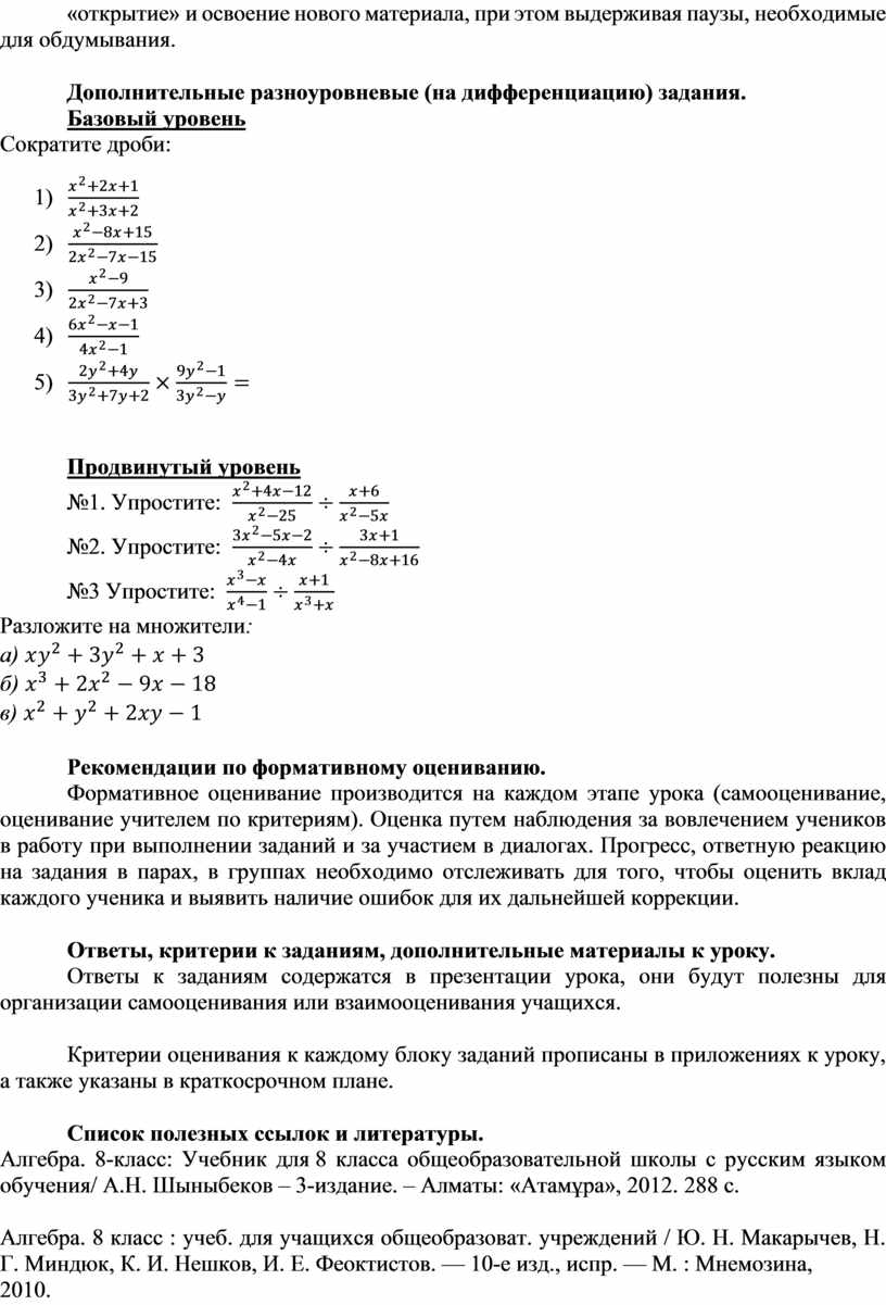Алгебра. 8-класс: Учебник для 8 класса общеобразовательной школы с русским языком обучения/ А.Н. Шыныбеков – 3-издание. – Алматы: «Атамұра», 2012. 288 с.