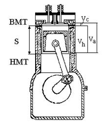 Перемещение поршня в цилиндре вызывает изменение объема надпоршневого пространства. Объем надпоршневого пространства при положении поршня в ВМТ называют объемом камеры сгорания Vc.
