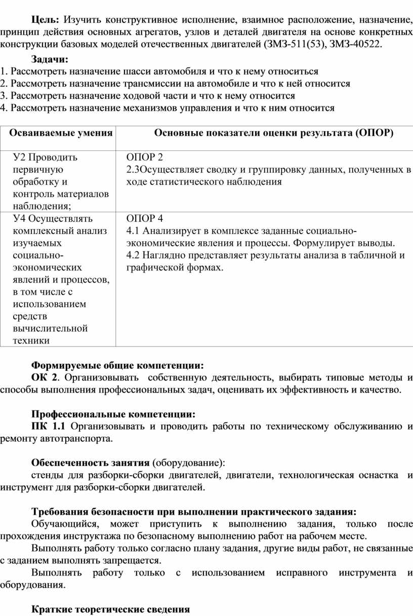 Методические рекомендации к выполнению лабораторно – практических работ по МДК 01.01 «устройство автомобилей»