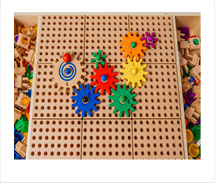 Ребенок учится понимать взаимосвязи, которые возникают, когда шестеренки приводятся в движение.