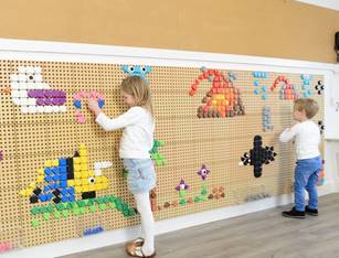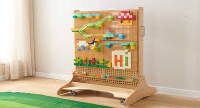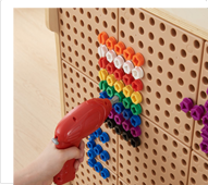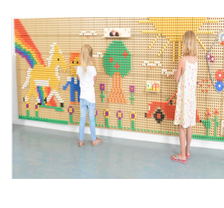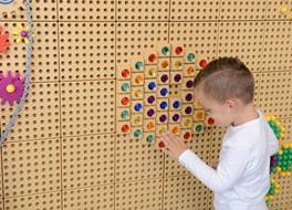 При помощи данной панели дети могут создавать красочные рисунки, используя разноцветные колышки, вкручивать болты или используя трубы, чтобы совершать интересные путешествия при помощи шариков. У детей всегда будет новая задача, которую нужно решать и исследовать каждый день.