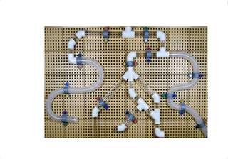 треки, вместо воды по трубам движется шарик, дети изучают такие понятия как