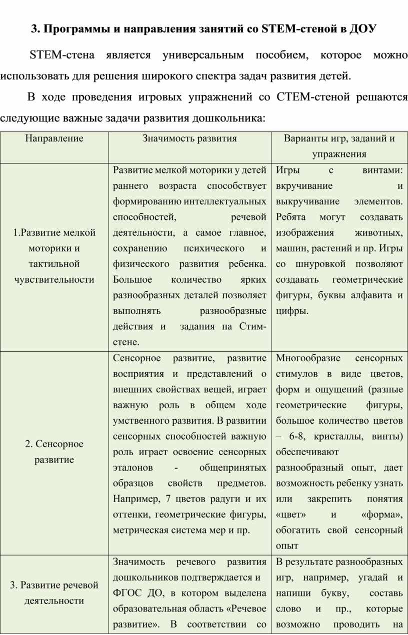 3. Программы и направления занятий со STEM-стеной в ДОУ