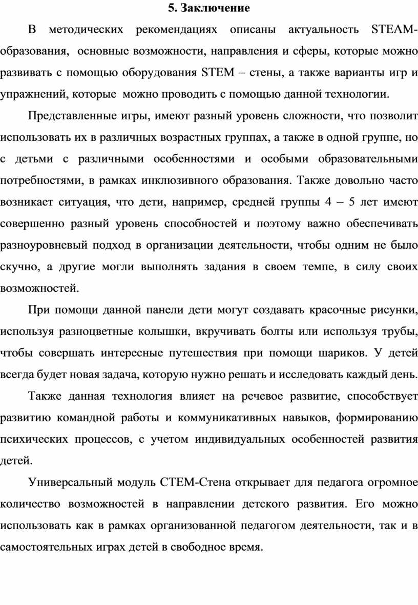В методических рекомендациях описаны актуальность STEAM-образования, основные возможности, направления и сферы, которые можно развивать с помощью оборудования STEM – стены, а также варианты игр и упражнений, которые можно проводить с помощью данной технологии.