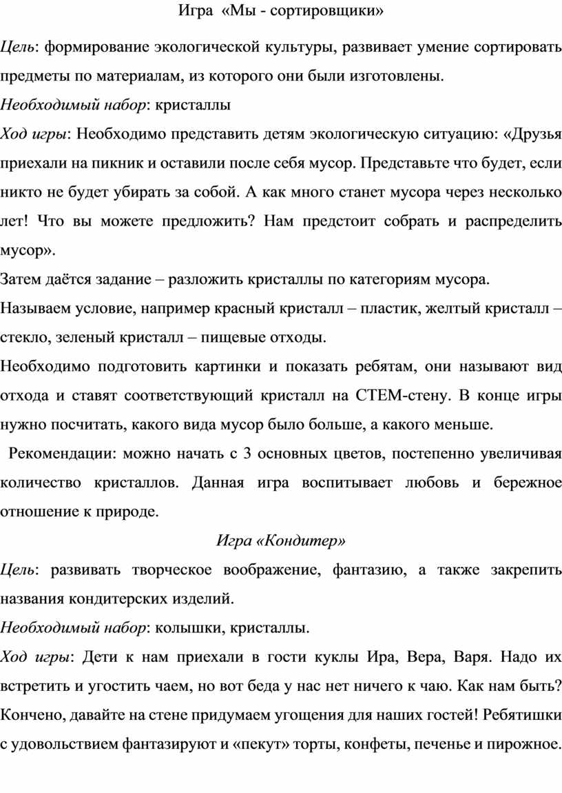 Рекомендации: можно начать с 3 основных цветов, постепенно увеличивая количество кристаллов. Данная игра воспитывает любовь и бережное отношение к природе.