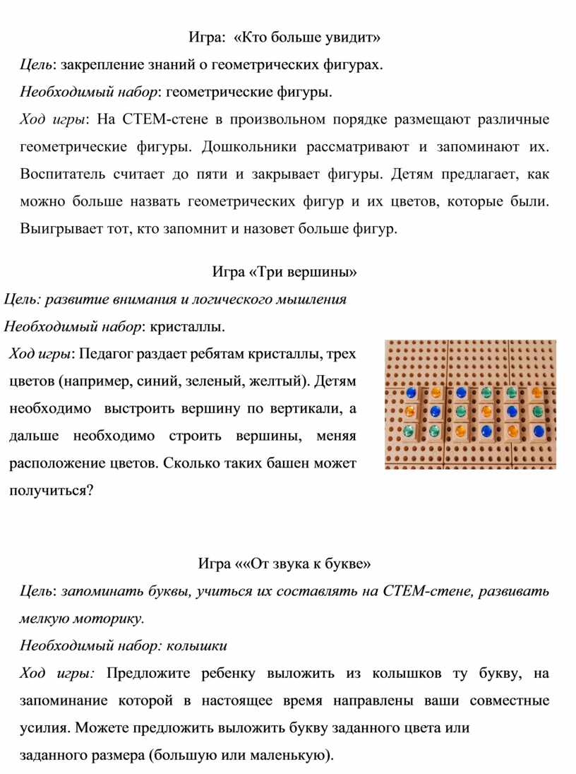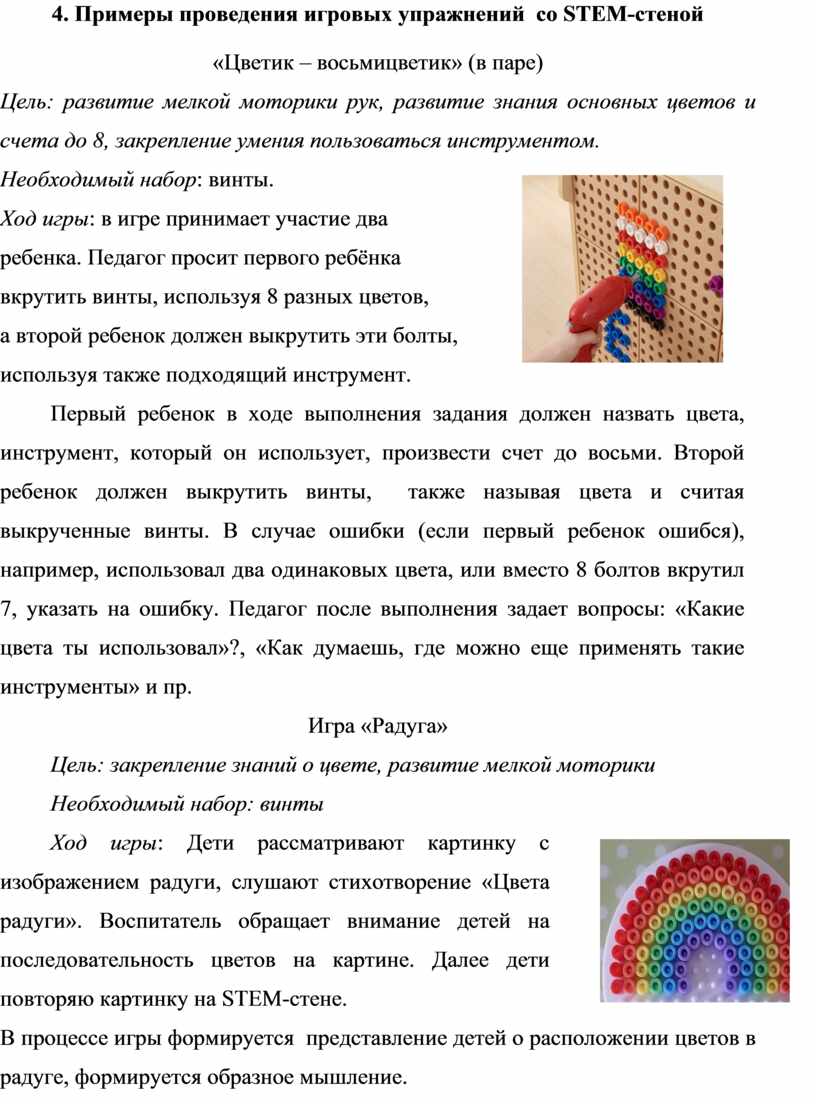 4. Примеры проведения игровых упражнений со STEM-стеной
