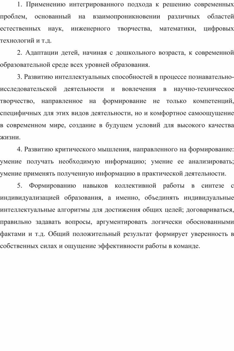 1. Применению интегрированного подхода к решению современных проблем, основанный на взаимопроникновении различных областей естественных наук, инженерного творчества, математики, цифровых технологий и т.д.