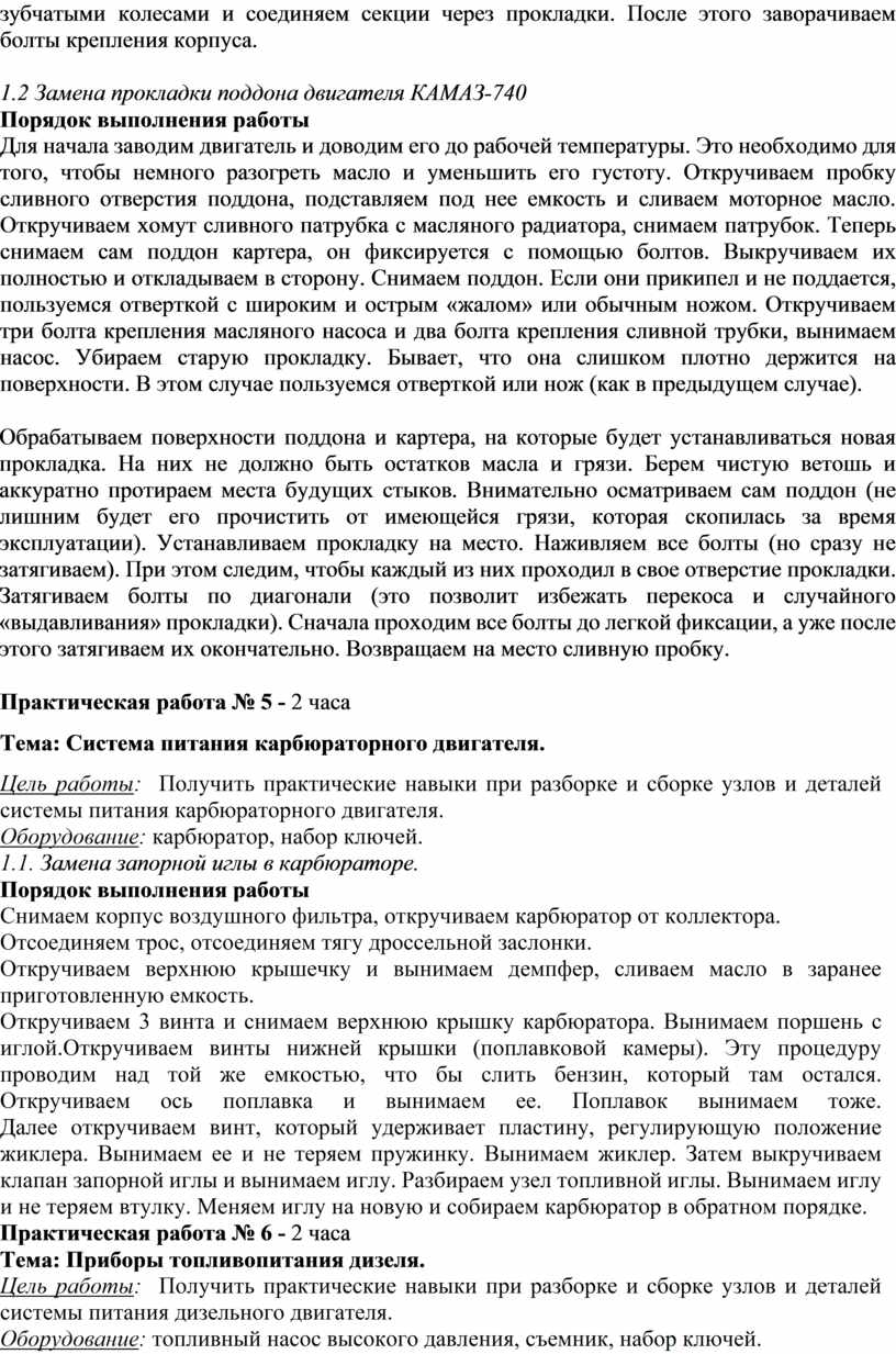 Практическая работа №5 «Система питания карбюраторного двигателя». |