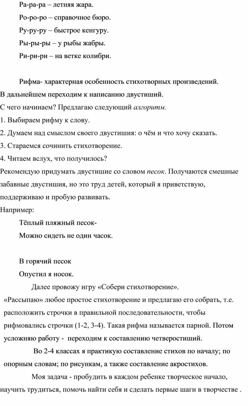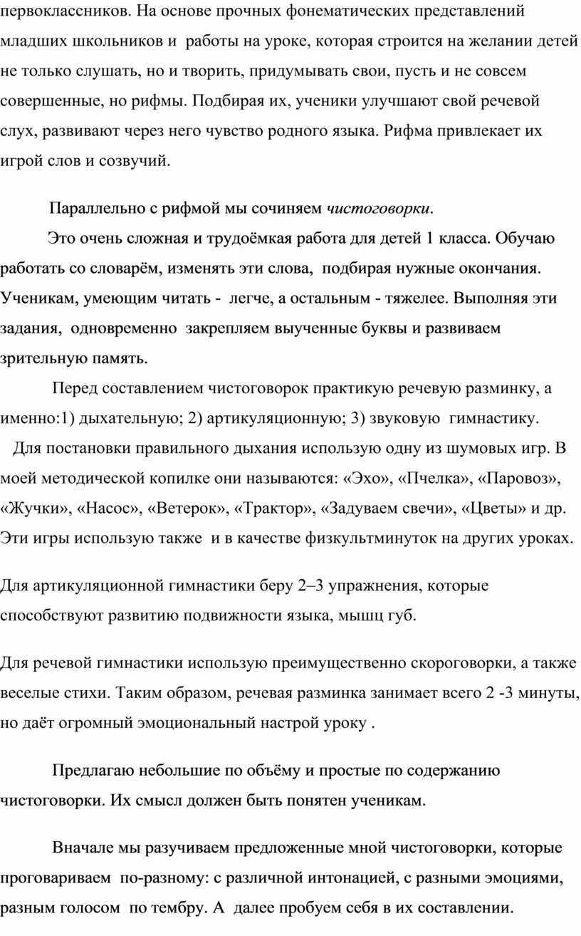 Методические рекомендации по составлению рифм и чистоговорок для развития речи и творческих способностей учеников.