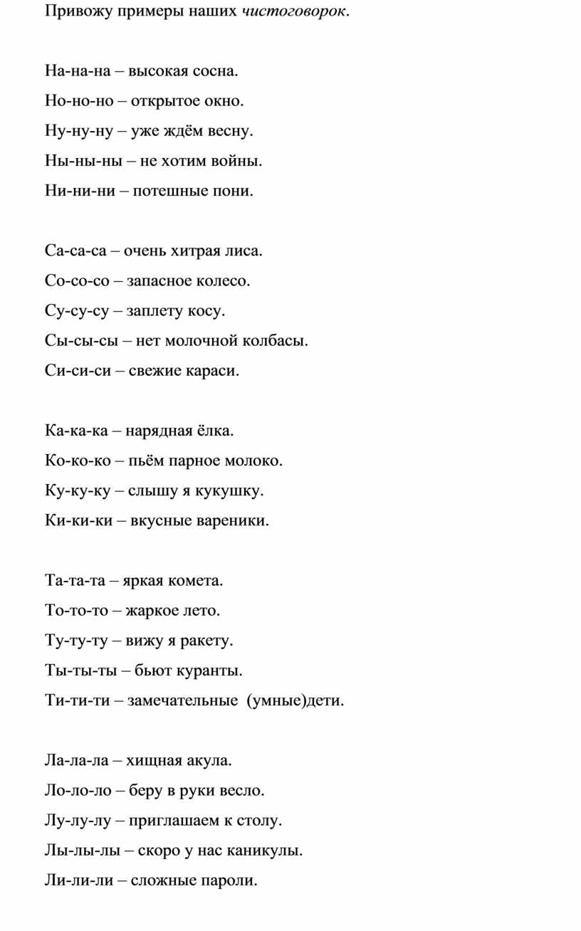 Привожу примеры наших чистоговорок.