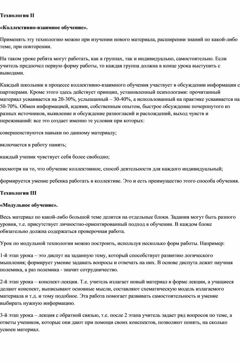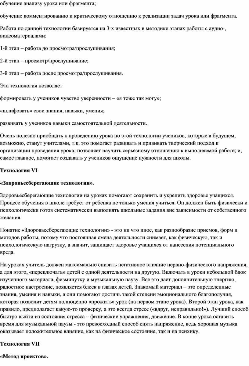 Развитию УУД на уроке способствует применение современных педагогических технологий: технология критического мышления, проектная деятельность, исследовательская работа, дискуссионная технология, коллективная и индивидуальная мыслительную деятельность. Важно, чтобы учитель не искажал технологию, используя из неё только отдельные приёмы.