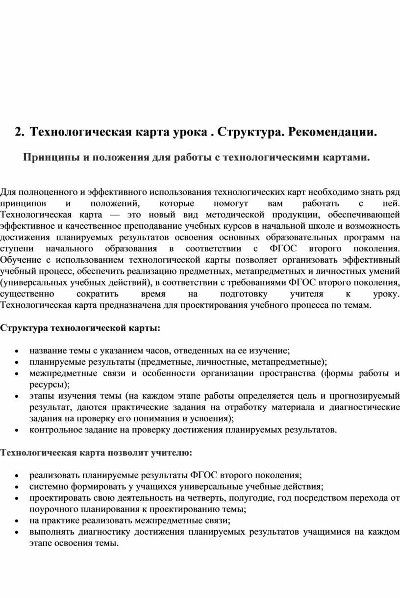 Технологическая карта урока, соответствующая требованиям ФГОС