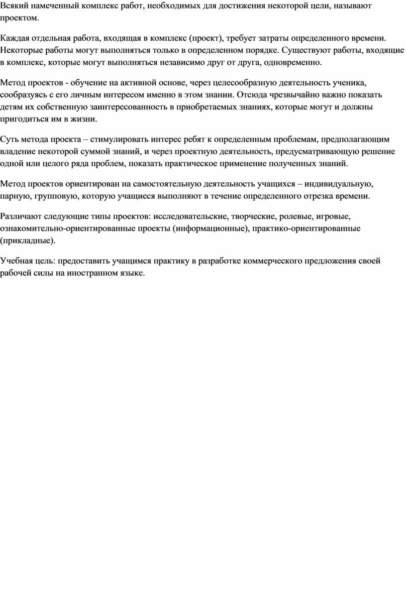 Учебная цель: предоставить учащимся практику в разработке коммерческого предложения своей рабочей силы на иностранном языке.