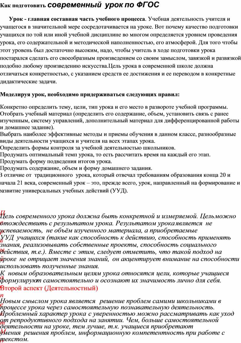 Как подготовить современный урок по ФГОС