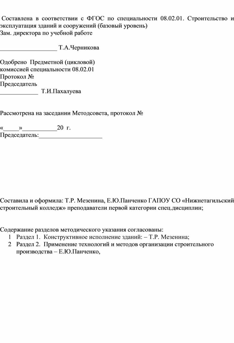 1 Раздел 1. Конструктивное исполнение зданий: – Т.Р. Мезенина;