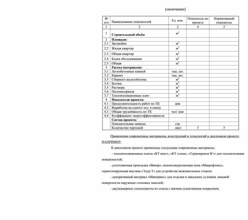 Применение современных материалов, конструкций и технологий в дипломном проекте: