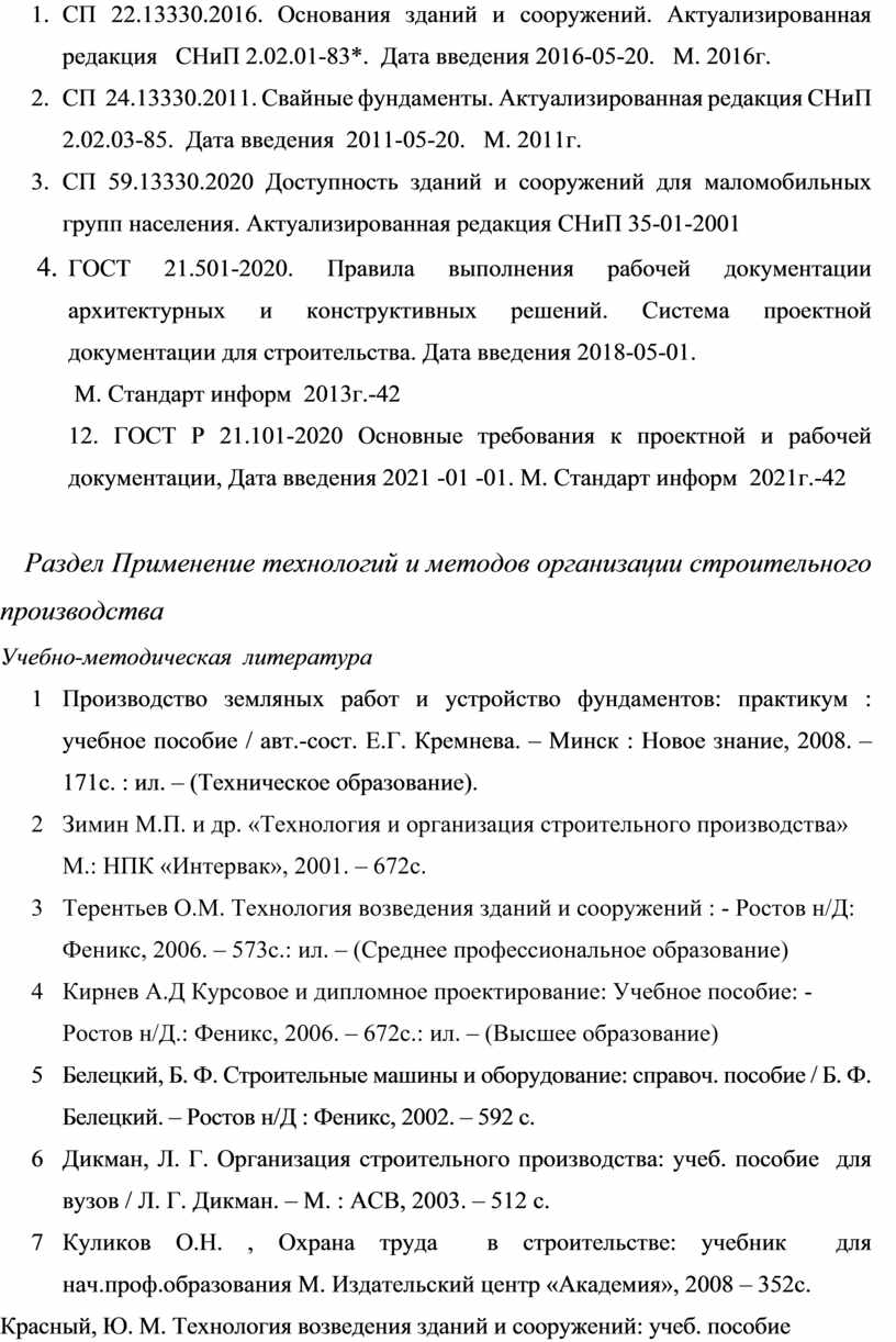Настоящие методические указания предназначены для студентов дневной и заочной формы обучения при выполнении выпускной квалификационной работы (дипломного проекта), обучающихся по специальности 08.02.01 «Строительство и эксплуатация зданий и сооружений».