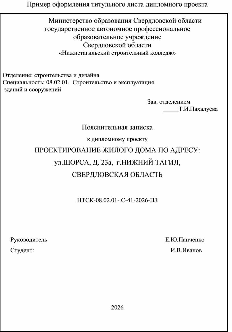 оформления титульного листа дипломного проекта