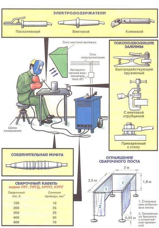 Крышку стола изготовляют из чугуна толщиной 20—25 мм. Сварочный пост оснащен