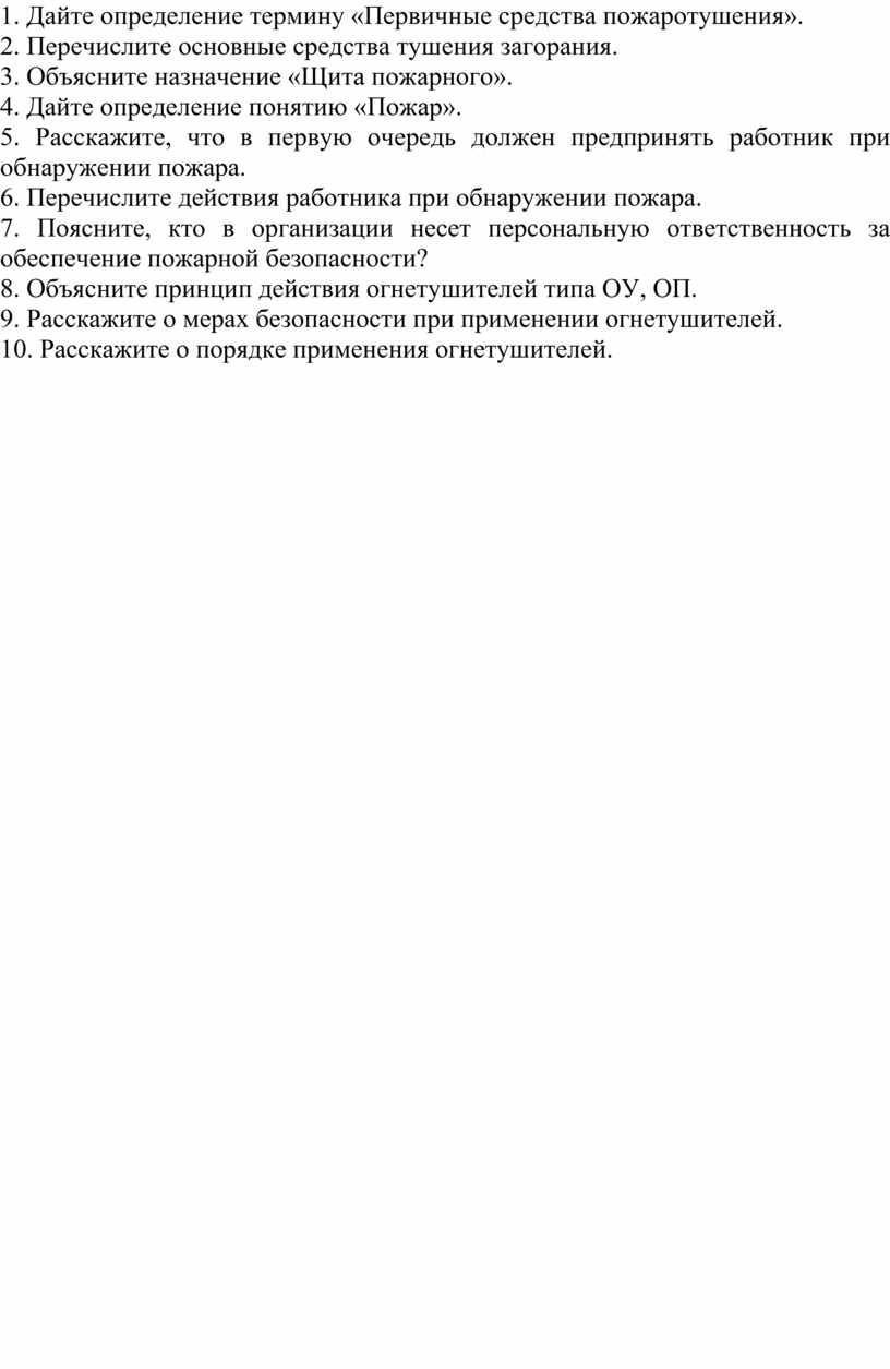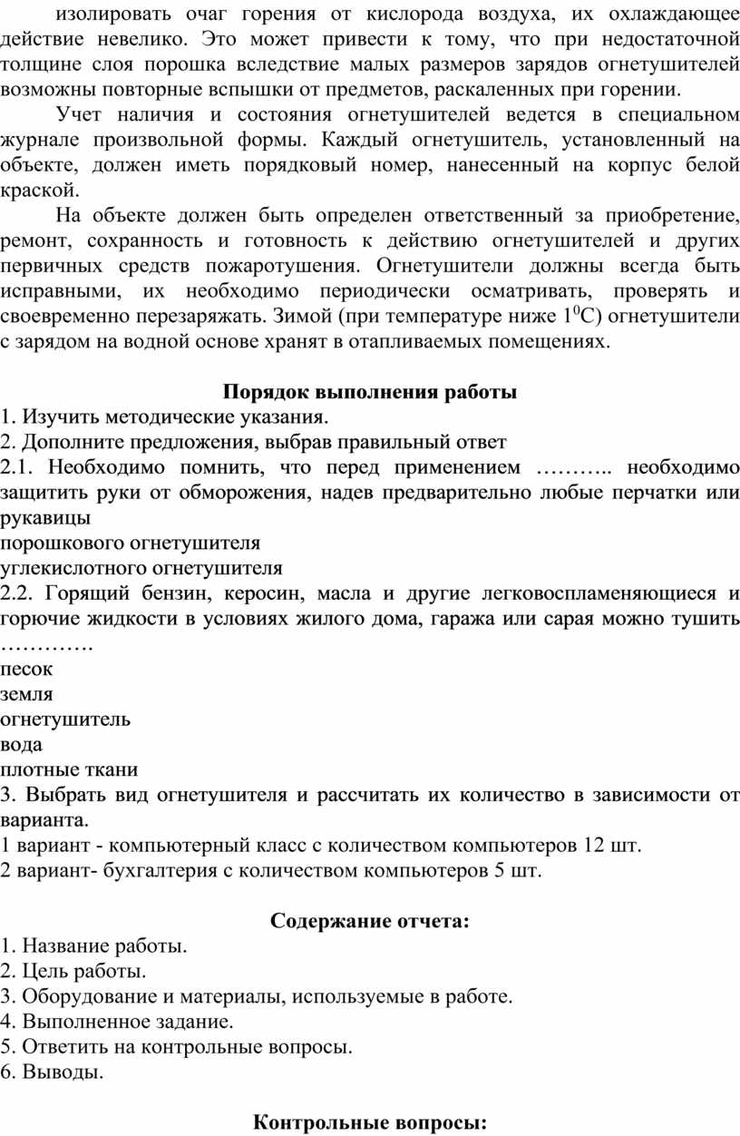 Цель работы: изучить первичные средства пожаротушения на рабочем месте, область их применения
