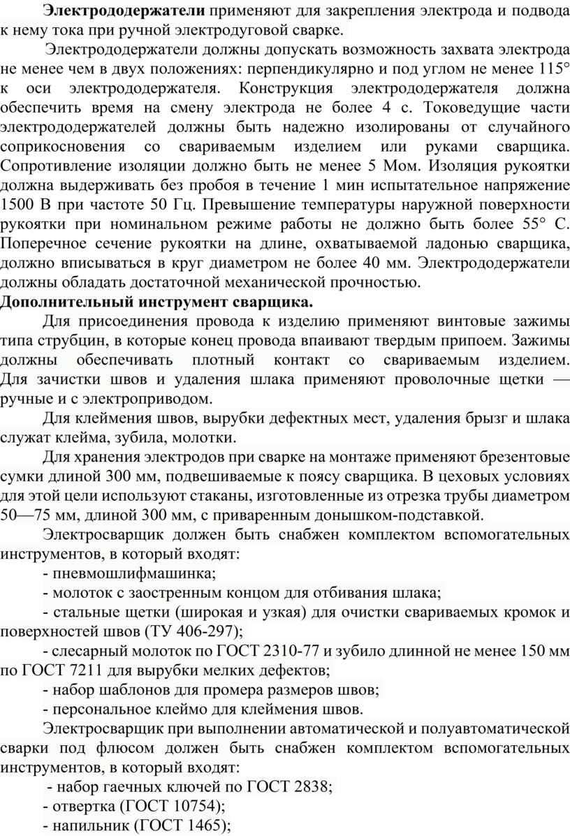 характера работ, согласно действующих отраслевых норм. Электросварщики обязаны
