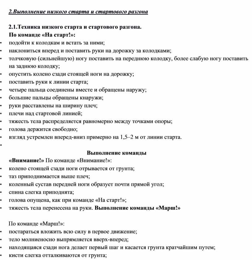 2.1.Техника низкого старта и стартового разгона.