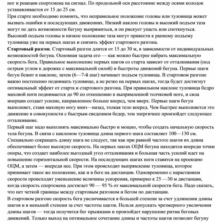 Нахождение оптимальной длины и частоты шагов – необходимое условие технического совершенства бегуна. Для каждого спортсмена, в зависимости от его роста, имеется определённый оптимум.