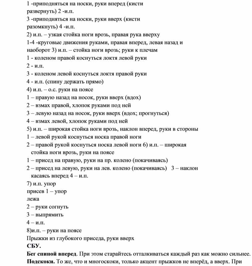 5-8 – тоже самое в правую сторону 2.Выполнение бега на длинные дистанции.