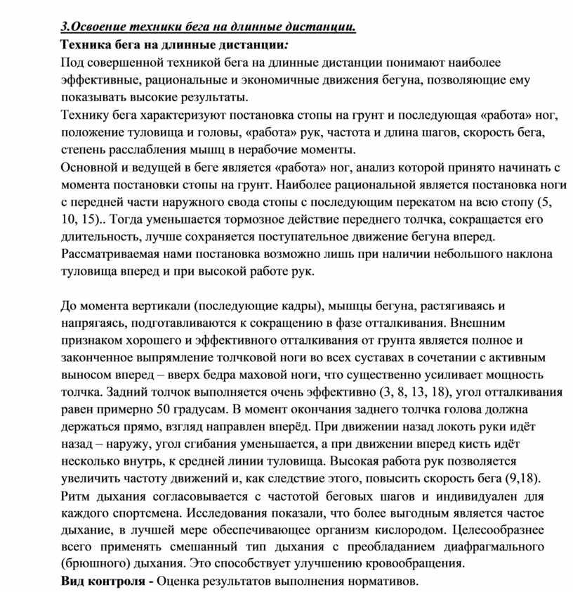 3.Освоение техники бега на длинные дистанции. Техника бега на длинные дистанции: