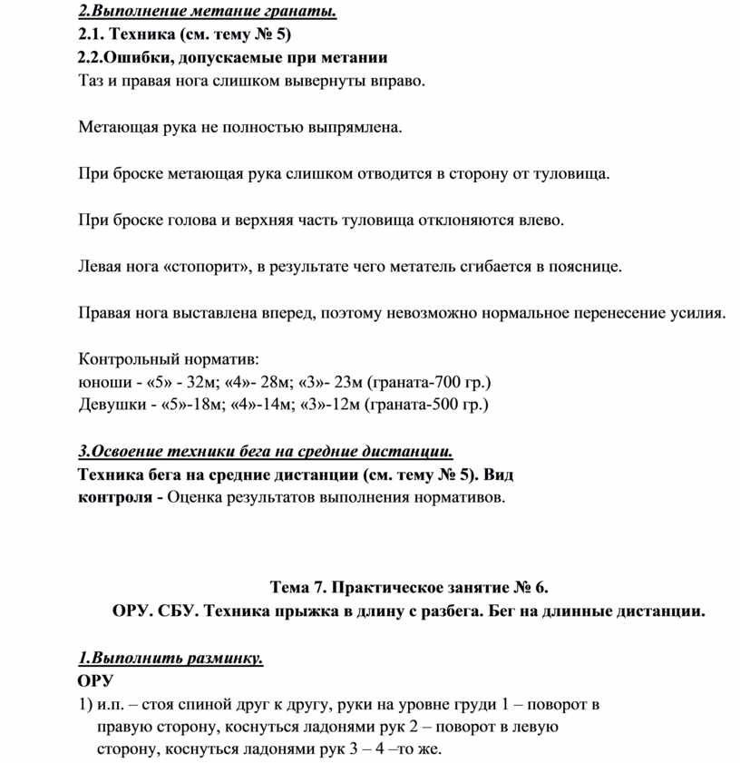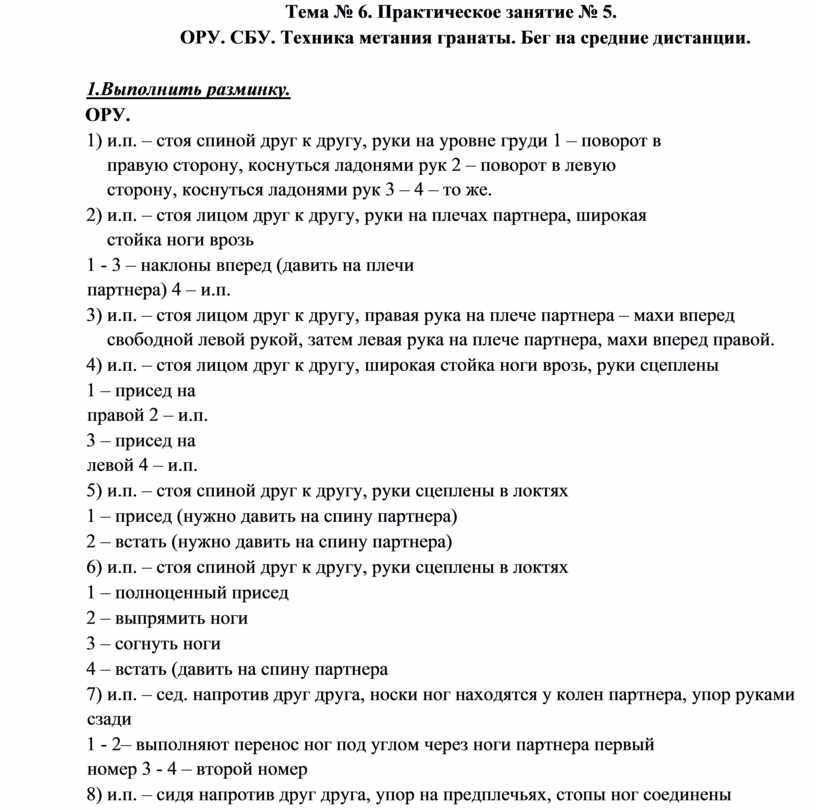 ОРУ. СБУ. Совершенствование техники метания гранаты. Техника эстафетного бега (4х100, 4х400).
