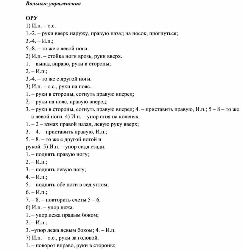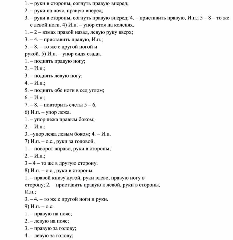 • 1-4 – отведение рук назад. 3)И.п. – руки в стороны. • 1-4 – вращение кистями вперед;