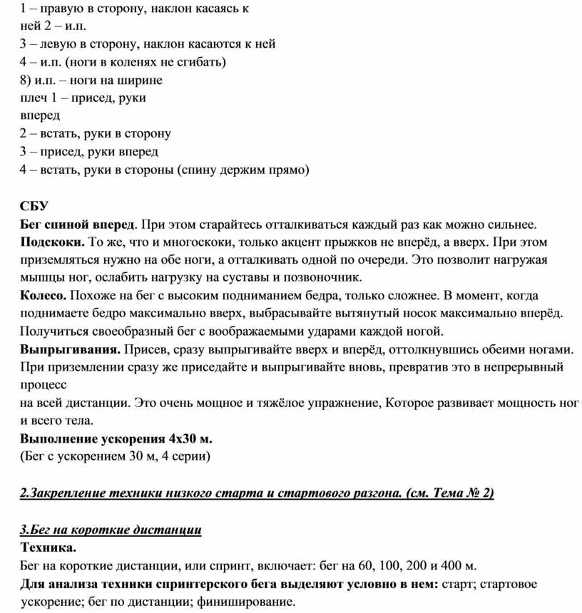 2.Выполнение низкого старта и стартового разгона