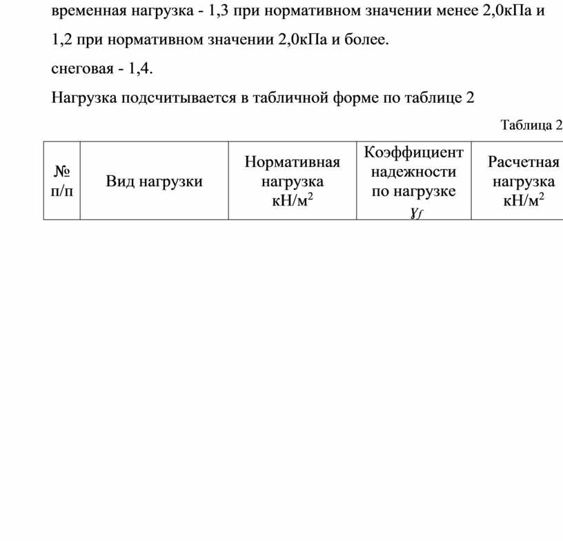 Расчетную нагрузку получают путем умножения нормативной на коэффициент надежности по нагрузке.
