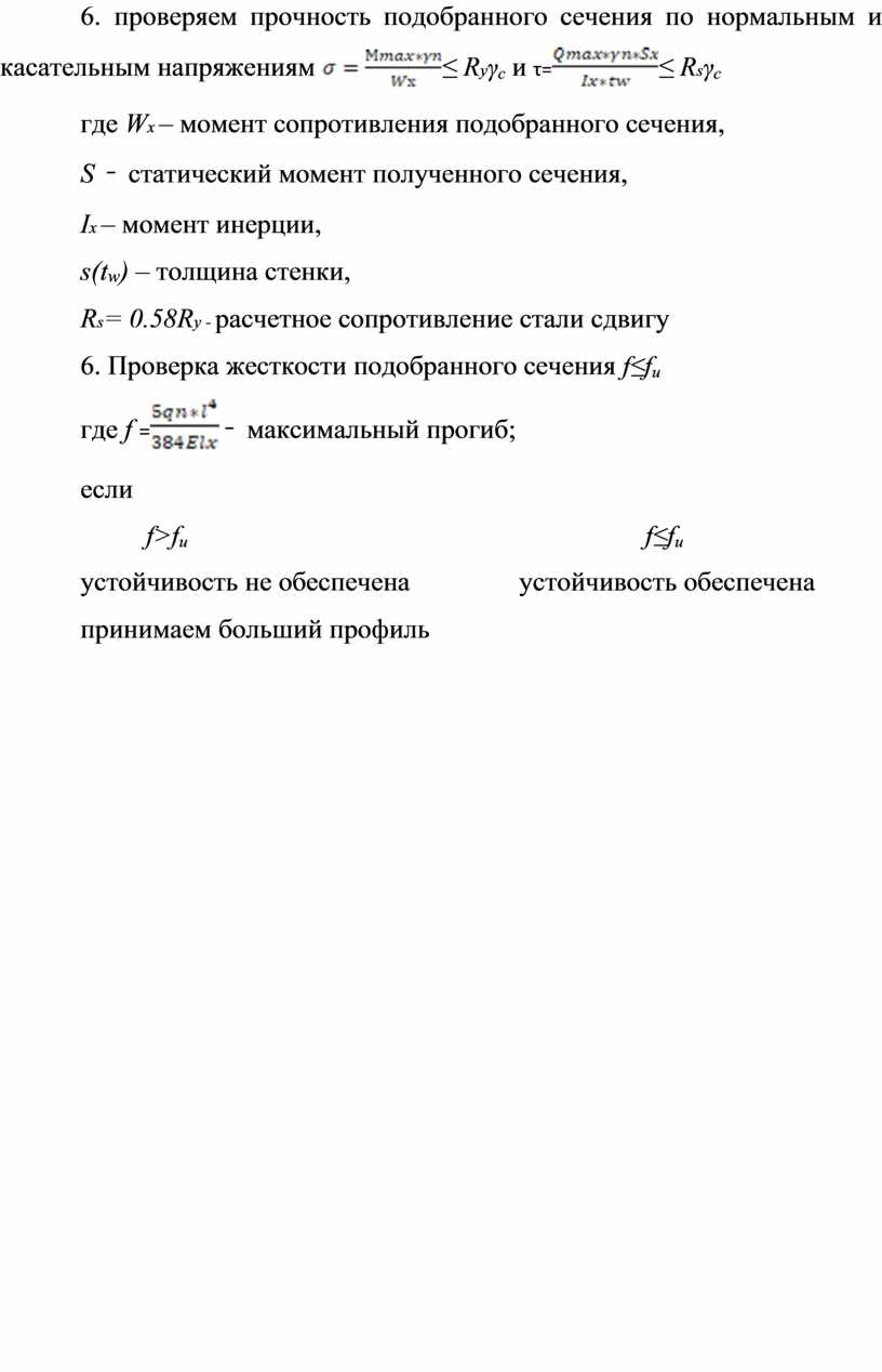 12. Как проверяют прочность и жесткость прокатной балки?