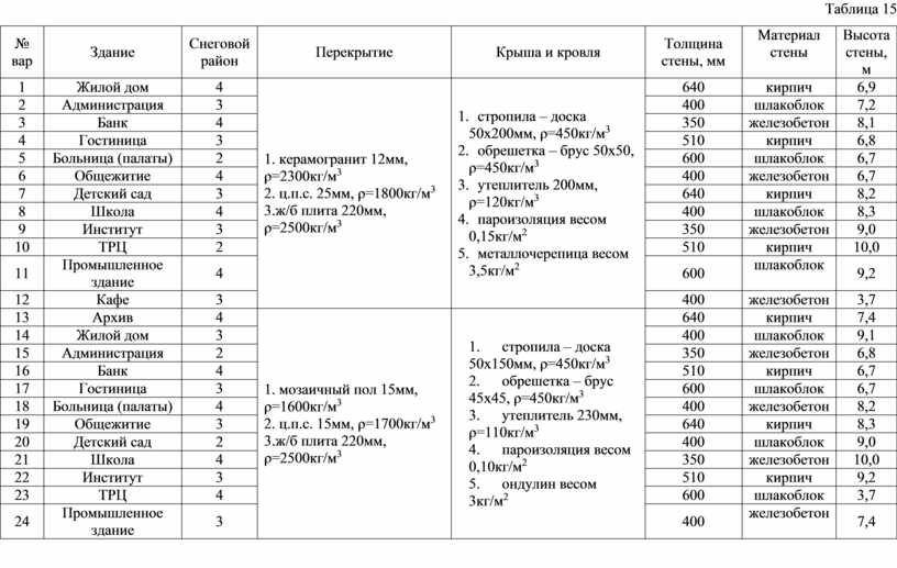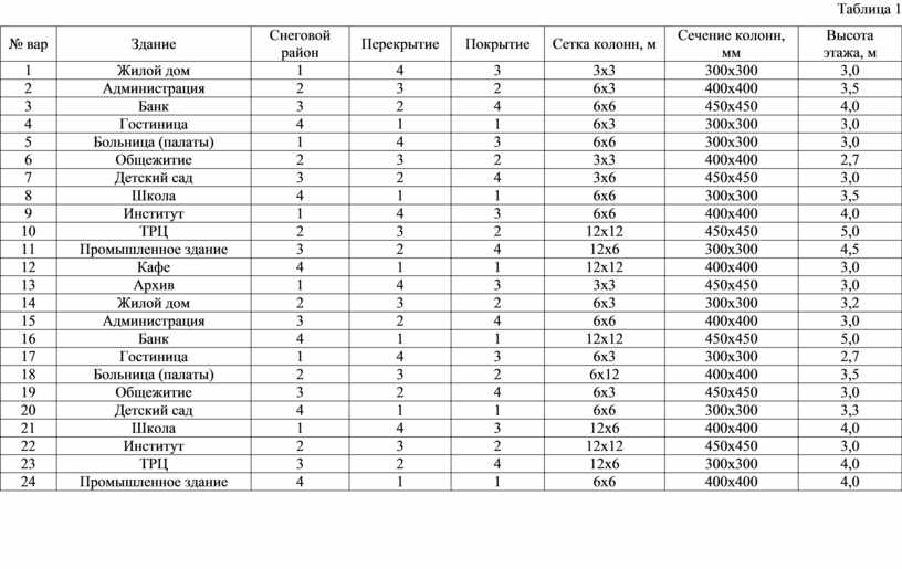 Задание: по данным таблицы 1 посчитать полную нагрузку на перекрытие, покрытие и на колонну 3-х этажного здания.