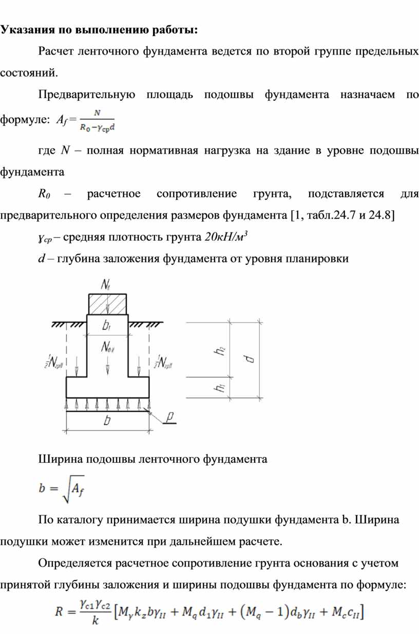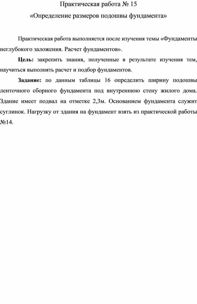 39. Какая нагрузка от здания нужна для расчета размеров подошвы фундамента?
