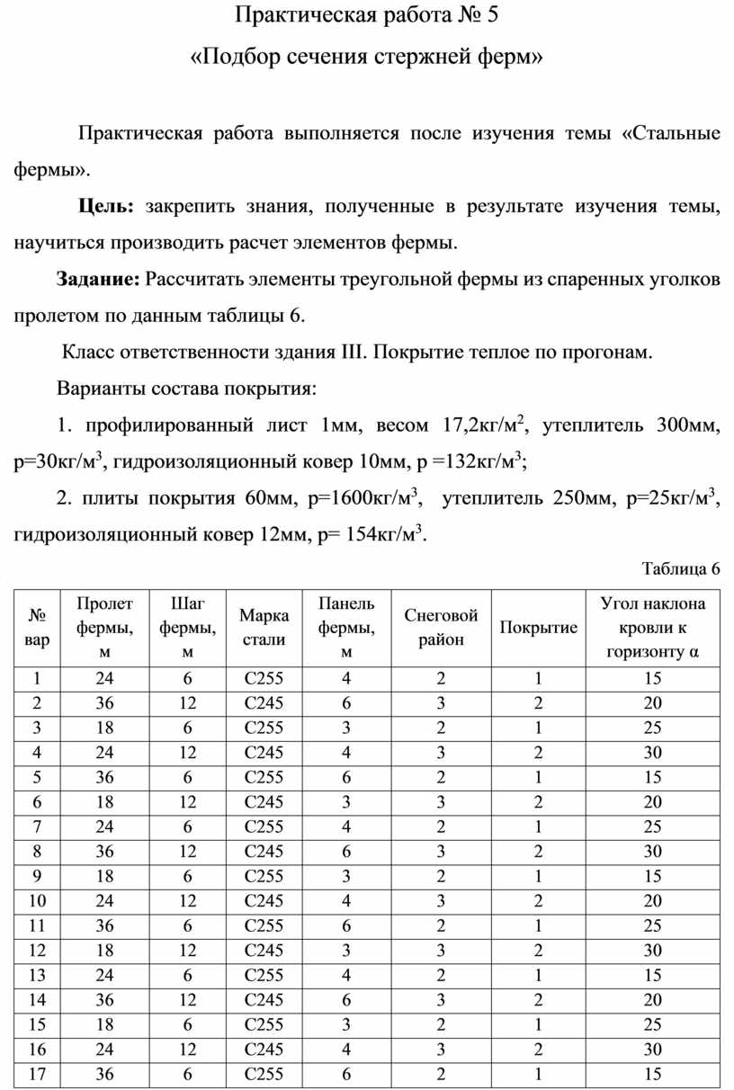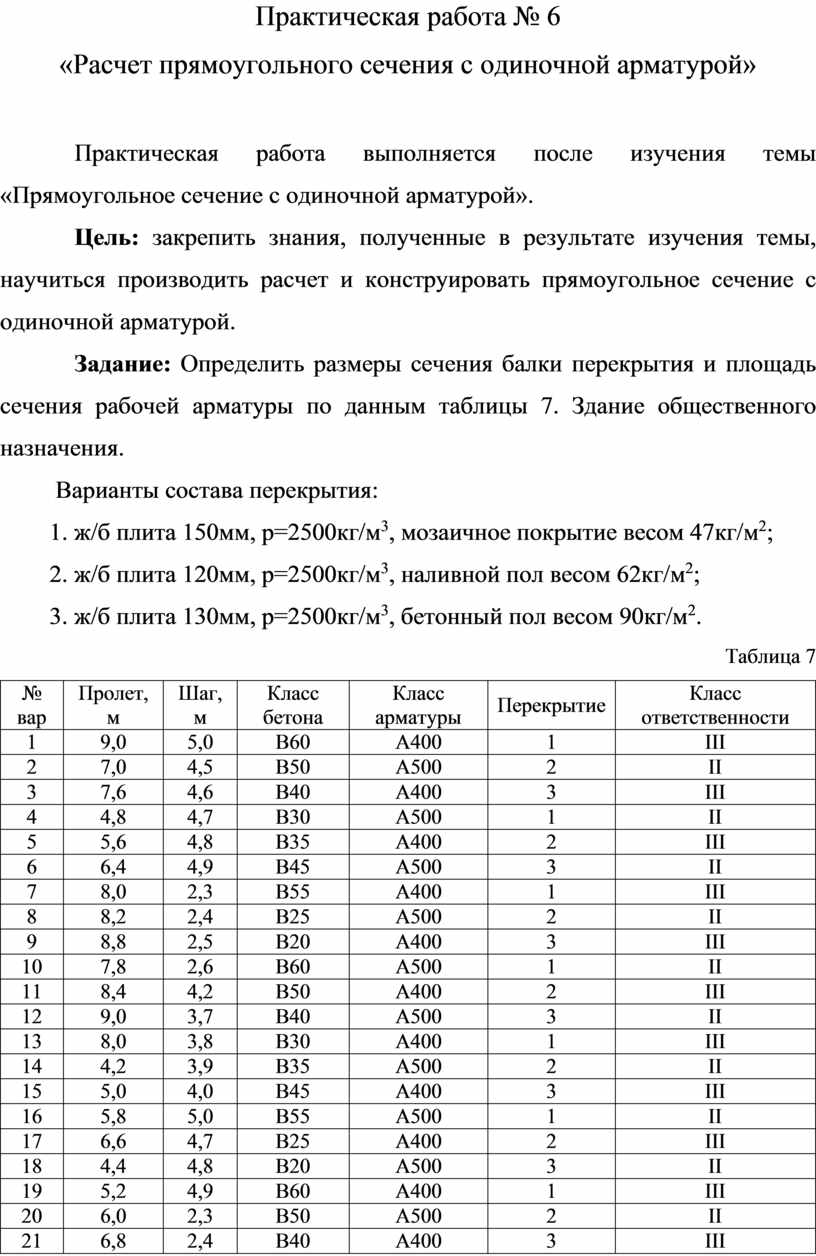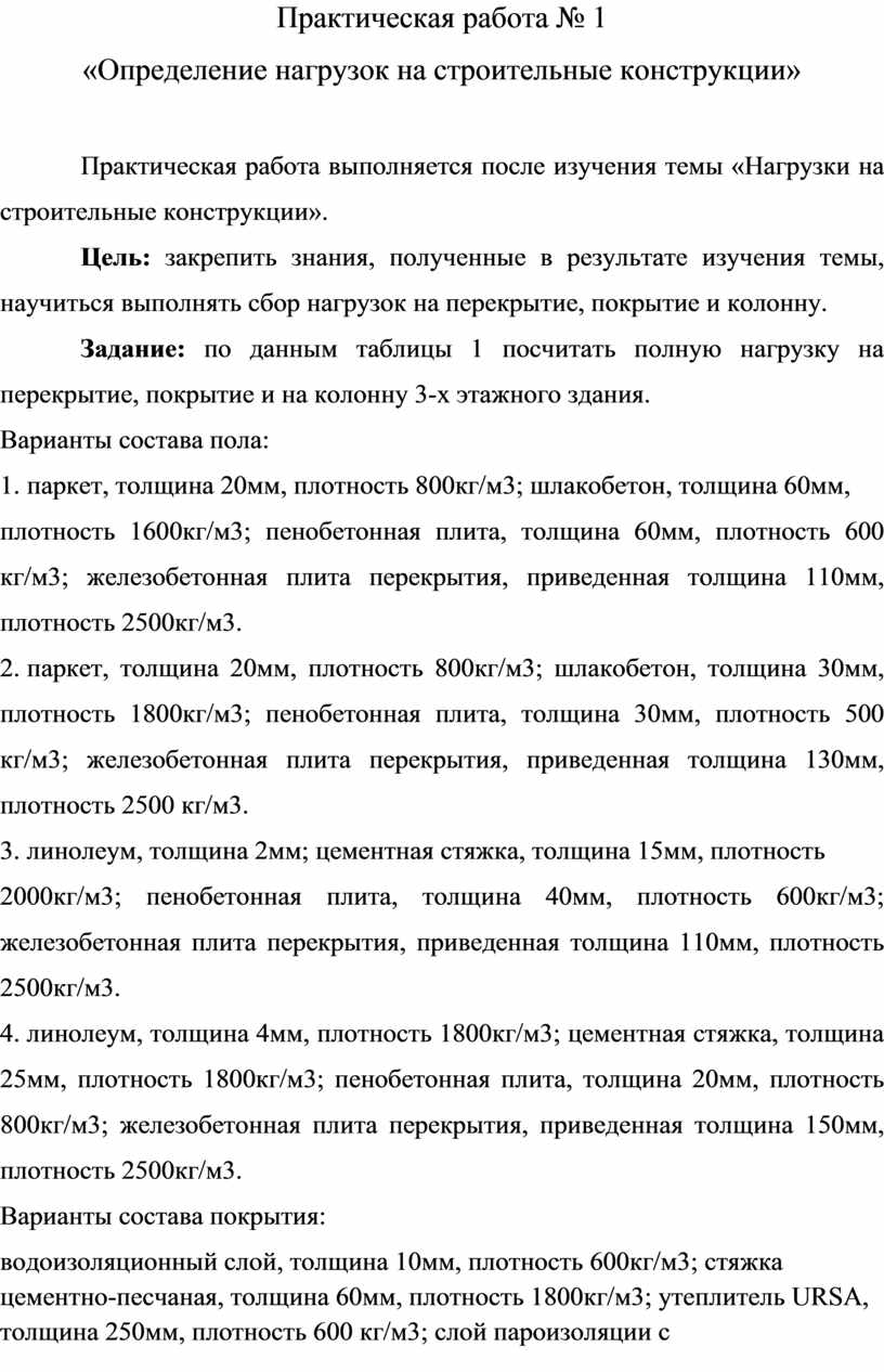 Практическая работа выполняется после изучения темы «Нагрузки на строительные конструкции».