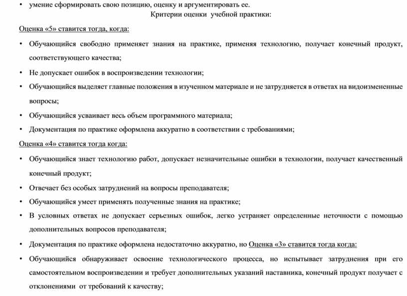 Критерии оценки учебной практики: