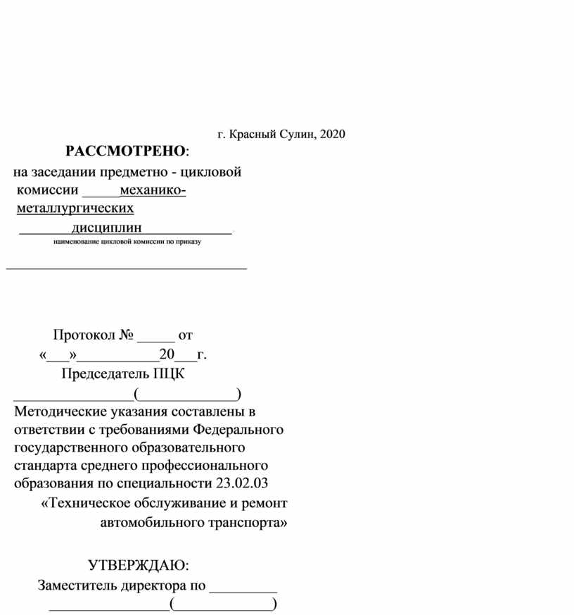________________(_____________) Методические указания составлены в ответствии с требованиями Федерального государственного образовательного стандарта среднего профессионального образования по специальности 23.02.03