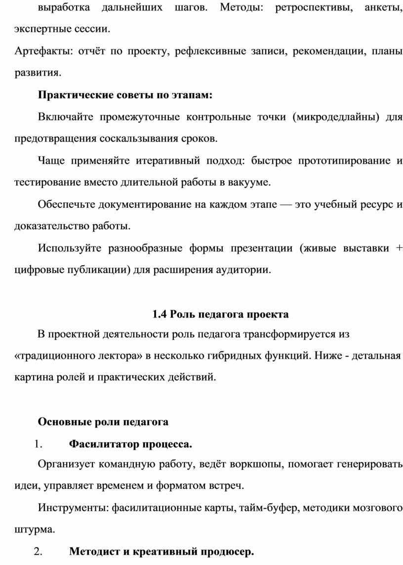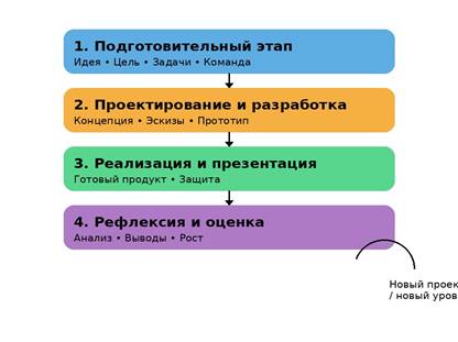 1. Деятельностный подход – обучение через практику, когда каждый участник вовлечён в процесс создания реального продукта или решения творческой задачи.