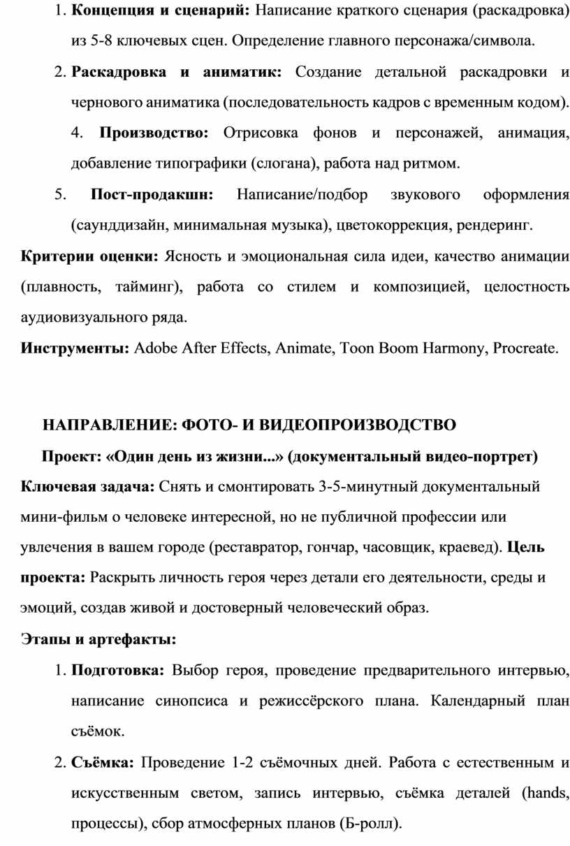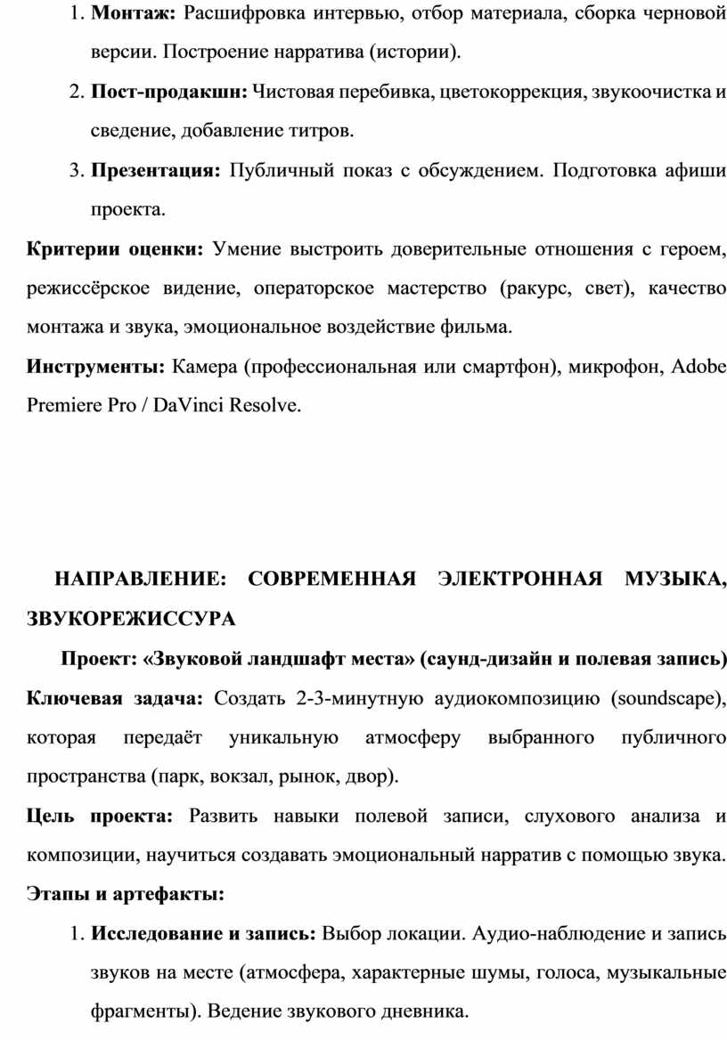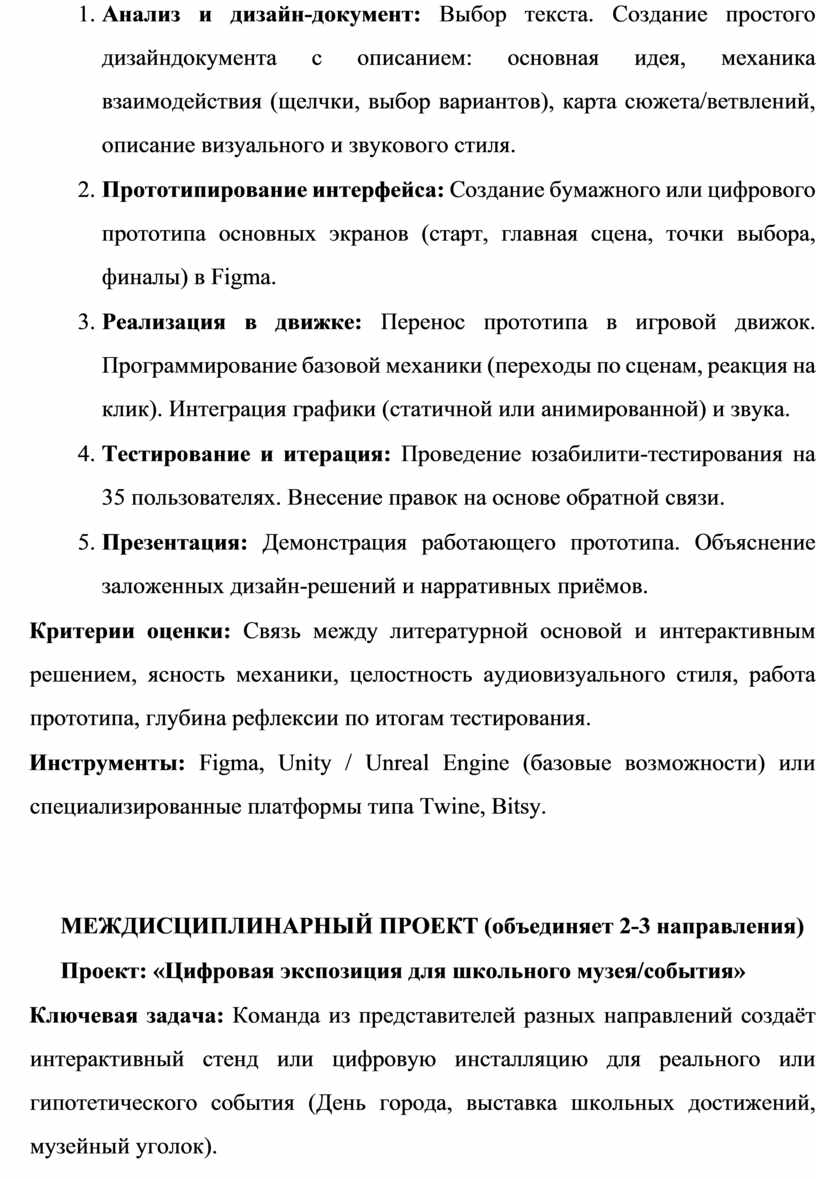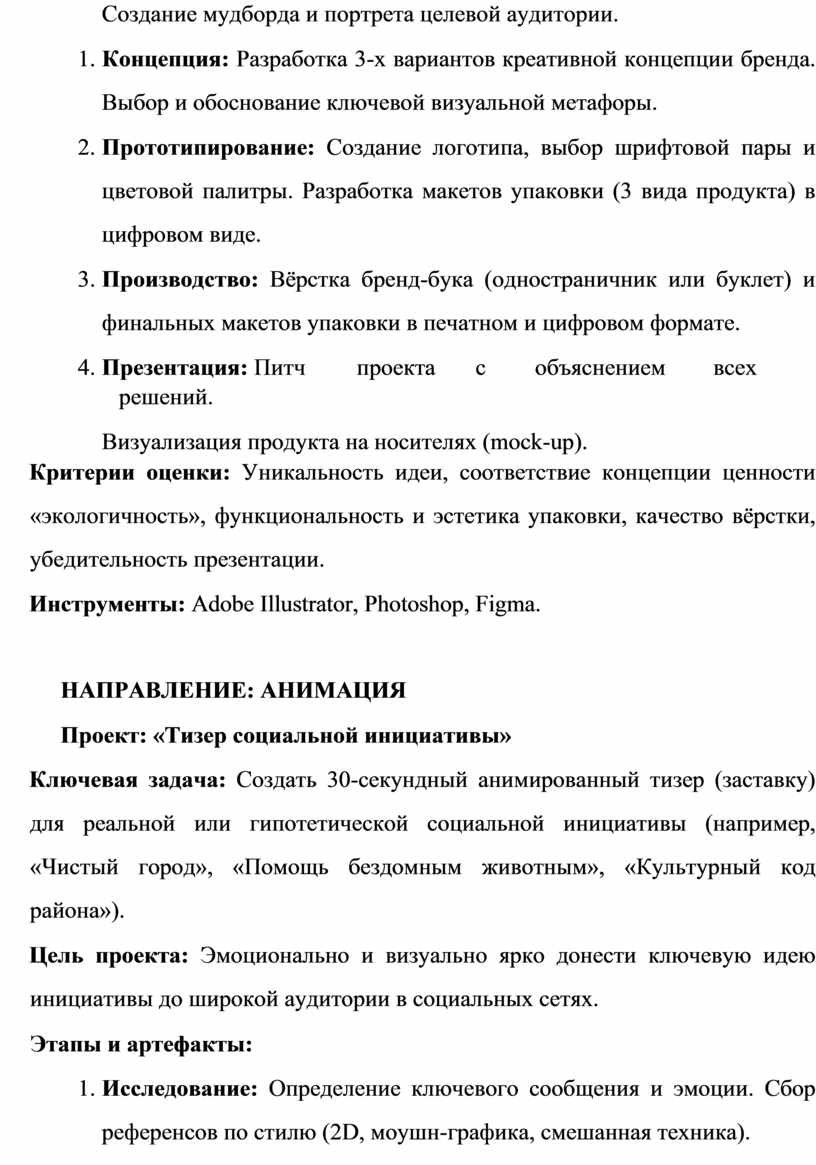 3. Разработать критерии оценки проектных результатов с учётом специфики творческих направлений.