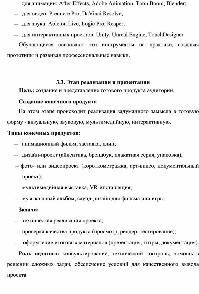 Инструменты: Набор инструментов в зависимости от выбранных специализаций (Figma, After Effects, Unity/Ableton и т.д.)[11].