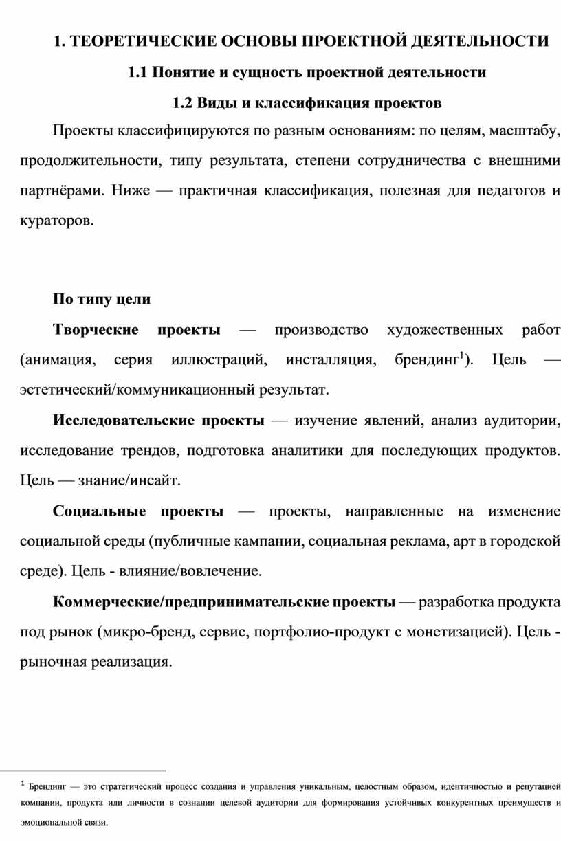 1. ТЕОРЕТИЧЕСКИЕ ОСНОВЫ ПРОЕКТНОЙ ДЕЯТЕЛЬНОСТИ