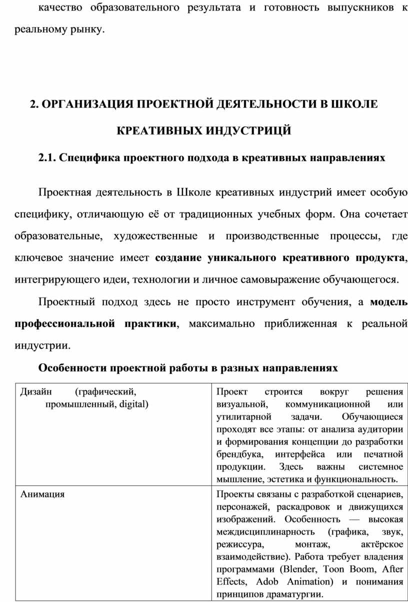 2. ОРГАНИЗАЦИЯ ПРОЕКТНОЙ ДЕЯТЕЛЬНОСТИ В ШКОЛЕ КРЕАТИВНЫХ