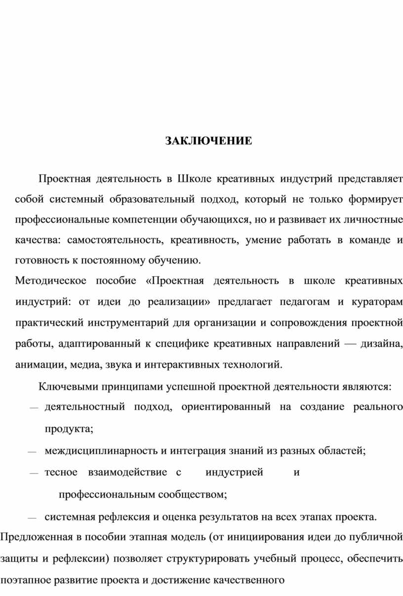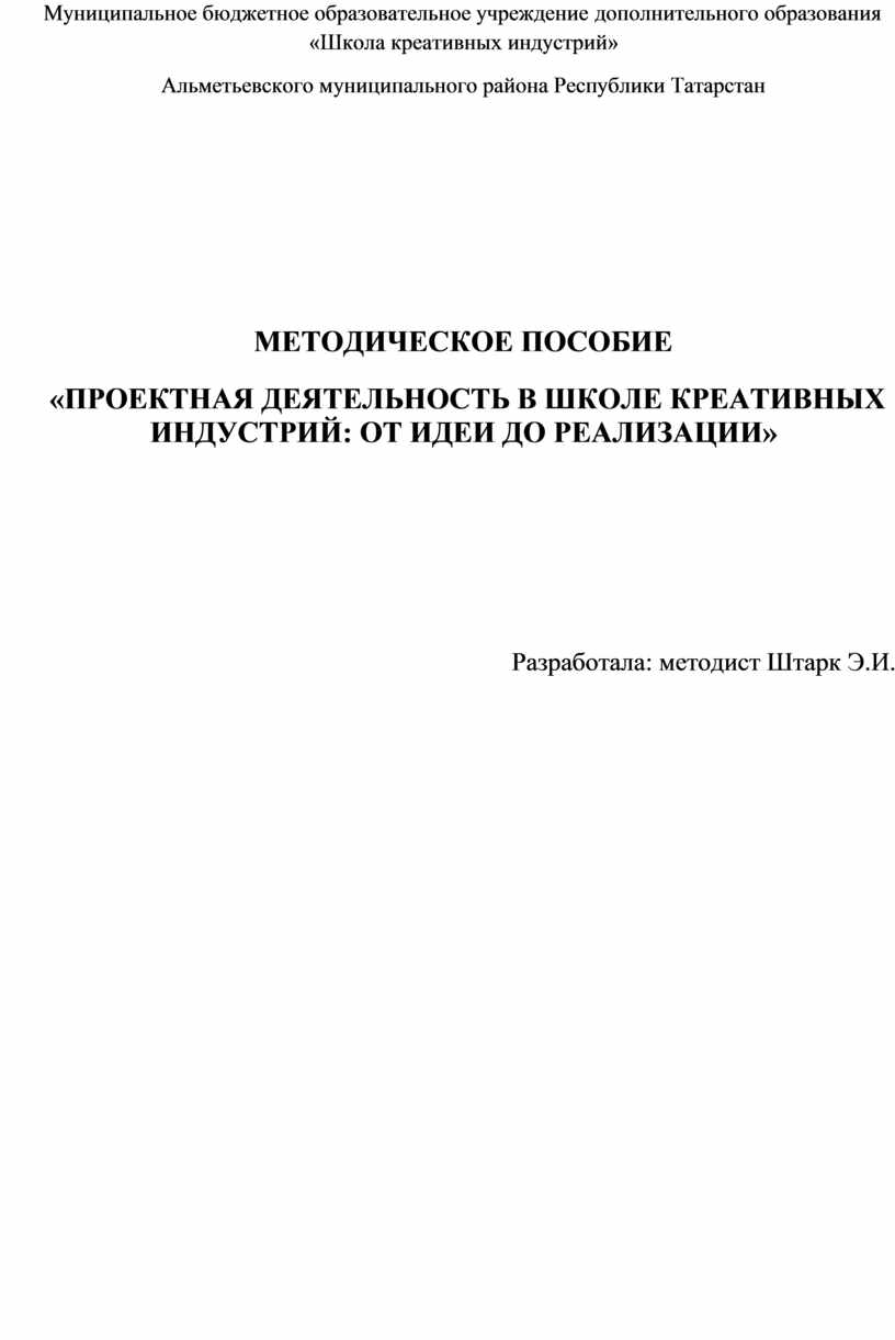 «ПРОЕКТНАЯ ДЕЯТЕЛЬНОСТЬ В ШКОЛЕ КРЕАТИВНЫХ ИНДУСТРИЙ: ОТ ИДЕИ ДО РЕАЛИЗАЦИИ»