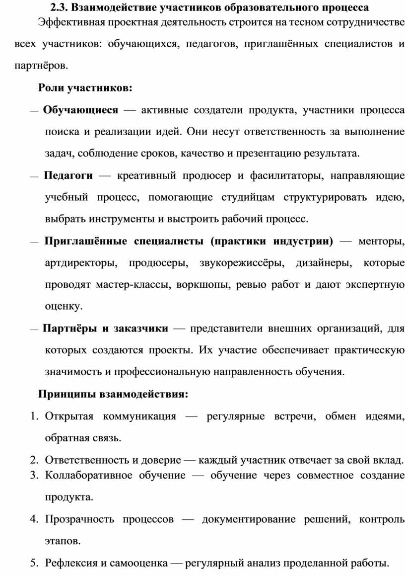 2.3 Взаимодействие участников образовательного процесса .................................... 18