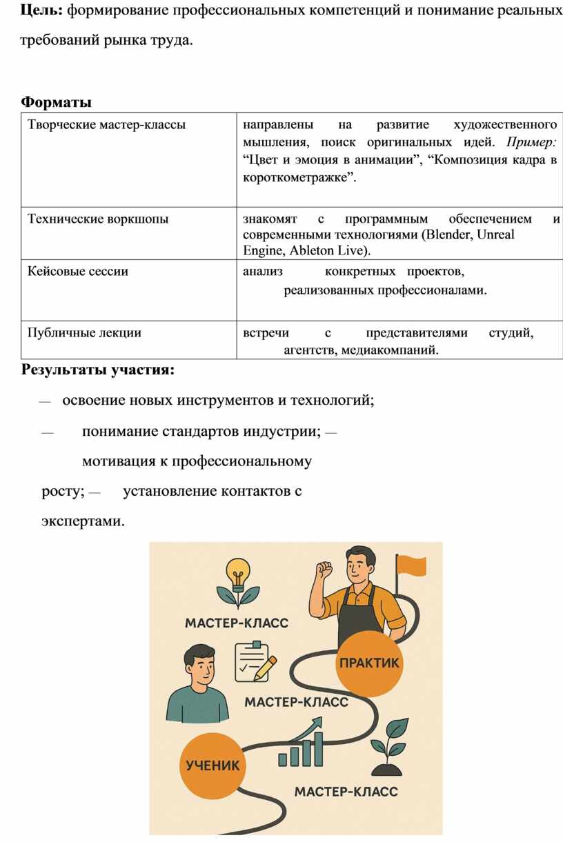 7. Партнёрство с индустрией – взаимодействие с профессиональными сообществами, студиями, компаниями, что делает проектную деятельность максимально приближенной к реальным условиям рынка.